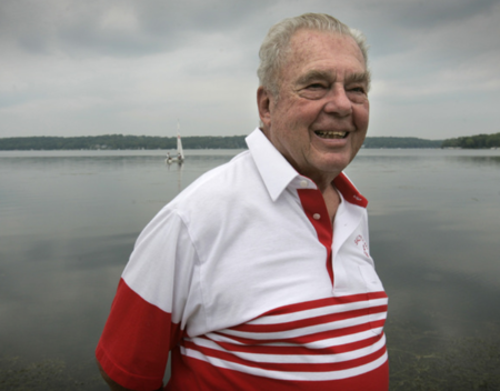 He may not be Wisconsin's most celebrated sailor. But surely, he's the most spirited and perhaps even among the most well-known, especially on Pewaukee Lake.